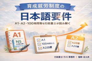 つまり、制度の入口では高度な専門性・技能を必須としない一方で、制度期間を通じて技能・日本語能力を計画的に高め、次のステップへ進むことを前提に設計されています。